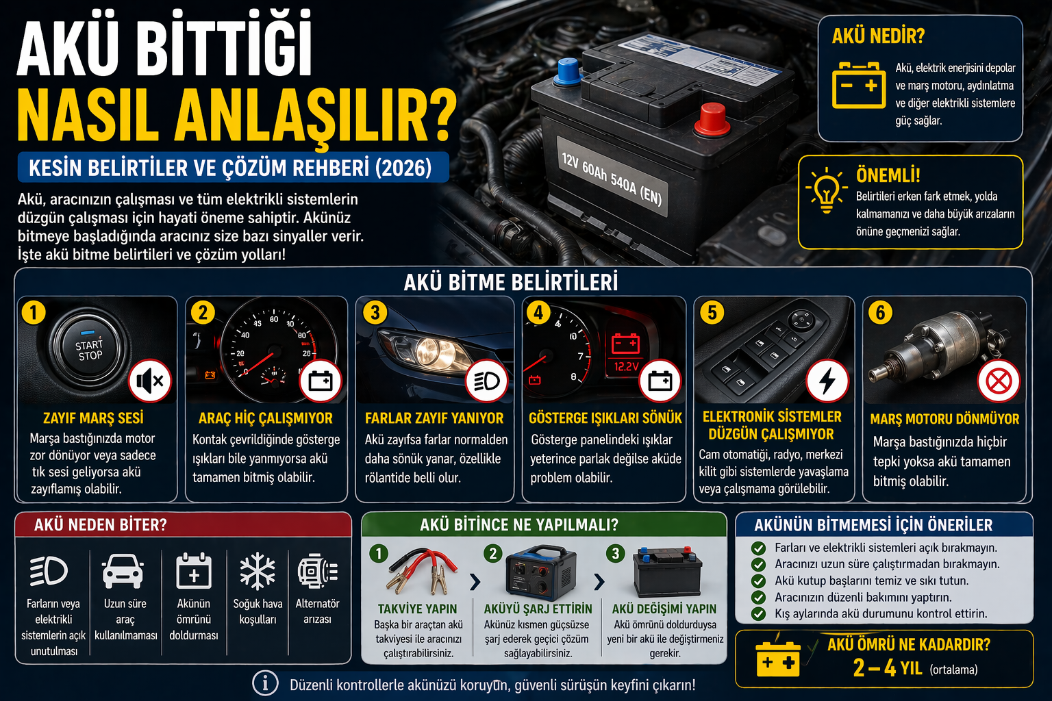 Akünün bitmeye başladığını gösteren bazı önemli belirtiler vardır. Bu işaretleri erken fark etmek, sizi daha büyük sorunlardan kurtarır.