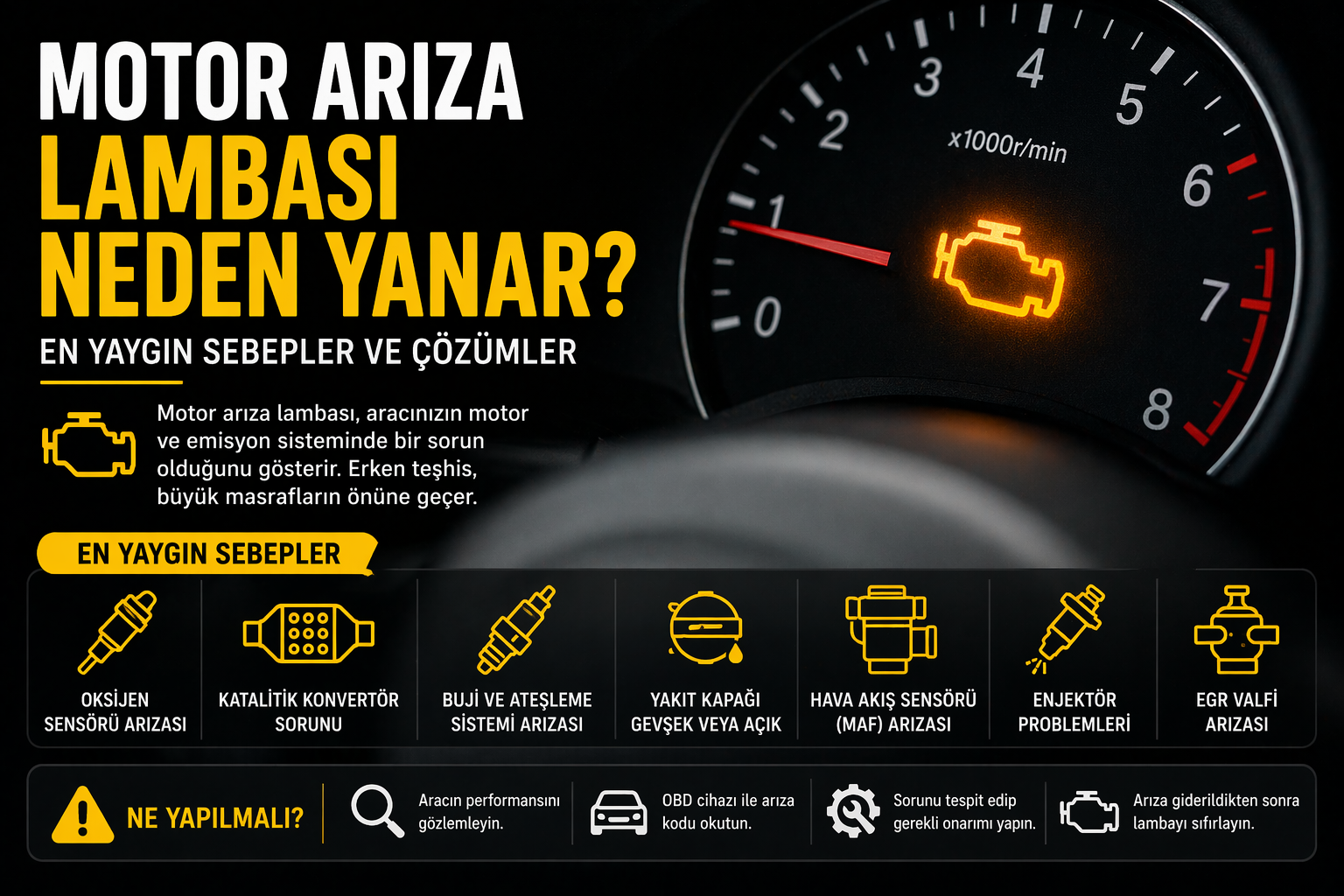 Motor arıza lambası yandığında panik yapmak yerine doğru adımları izlemek gerekir: